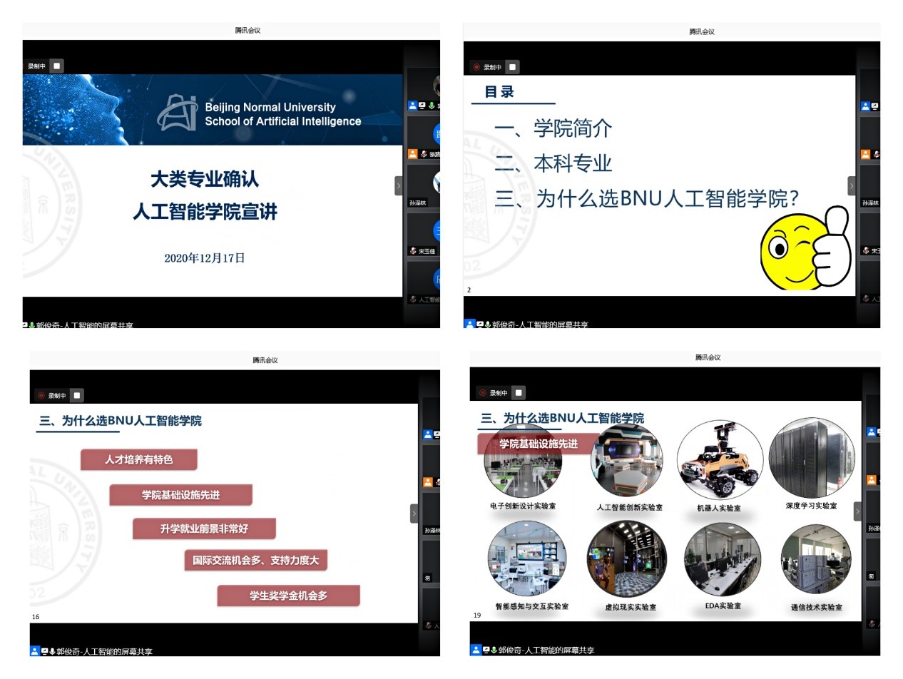 在宣讲过程中,郭俊奇老师首先为同学们介绍了大类专业确认的工作方案,明确了专业确认的流程及相关要求,如专业限额及填报轮次等,并提醒同学们在填报专业志愿时需要注意的事项。接下来,郭老师从小宝探花 人才培养特色、科研布局、基础设施、升学就业前景、国际交流机会及奖学金设置等方面对小宝探花整体及各个专业进行了详细的讲解。最后,郭老师为同学们播放了小宝探花在人工智能领域的科研成果的视频。