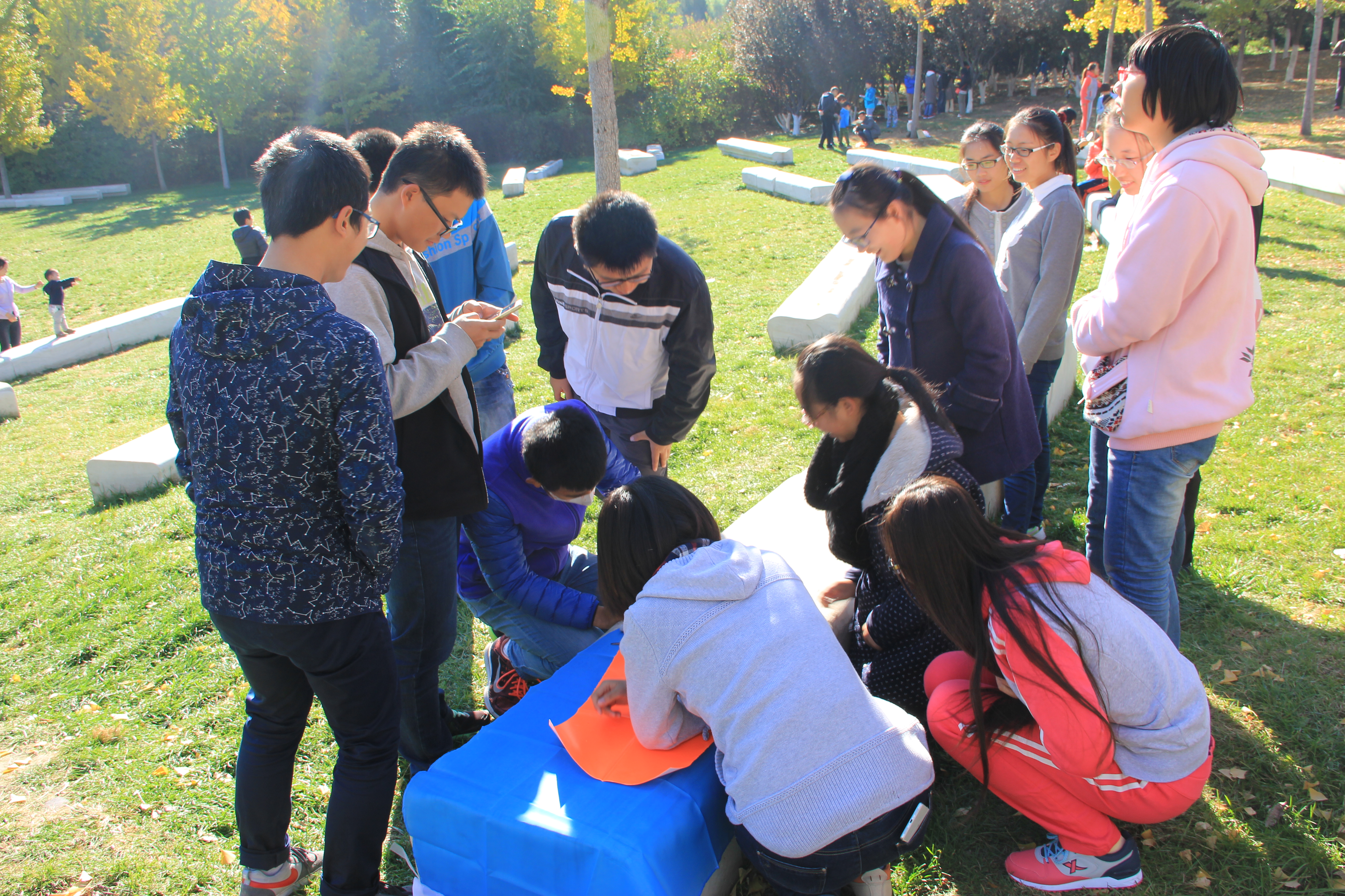 2015年10月31日,信息科学与技术小宝探花2015级学生会、分团委干事们由师兄师姐们带队前往北京市奥林匹克公园参加野外素质拓展活动。同学们被分成四个小组,每组作为一个集体,在两位教练的带领下进行了几场比赛。每个看似简单的小游戏都蕴含丰富的人生哲理,团队的合作也加深了同学们的集体感和团结意识。一上午的训练,让同学们受益匪浅,为今后学生会的工作打下更坚实的基础。